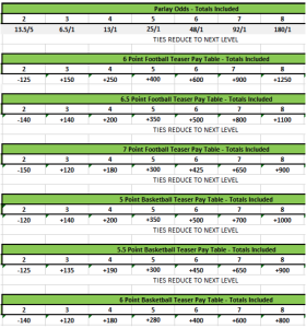 - B. Max “Off the Board” payout on any parlay or teaser is 299 to 1.